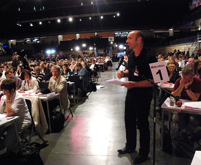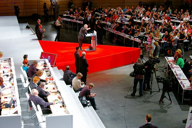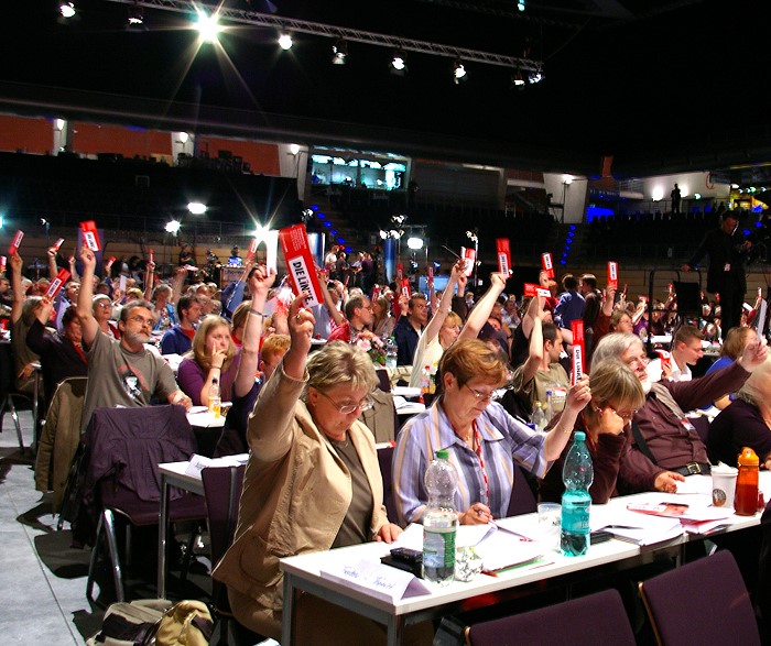 Am 20. und 21. Juni 2009 fand in Berlin ein Wahlparteitag der Linkspartei statt. Tagungsort war die Max-Schmeling-Halle, benannt nach dem weltberühmten Boxer. Zahlreiche Korrespondenten gingen im Vorfeld davon aus, dass sich die rund 500 Delegierten ein großes Hauen und Stechen liefern werden. Die Journalisten wurden enttäuscht. |