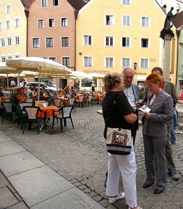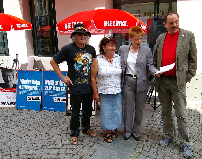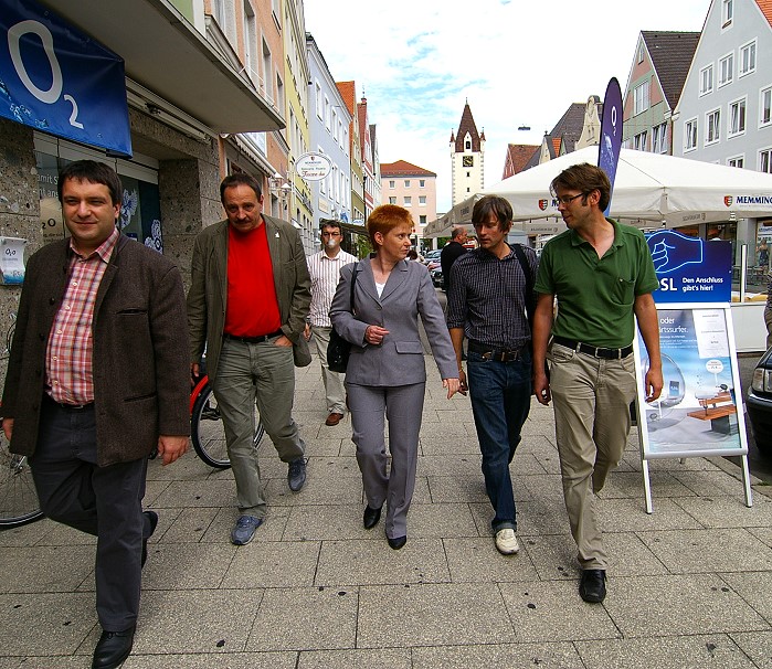 Der Bundestagswahlkampf ist eröffnet, auch in Bayern. Bei ihrem traditionellen Allgäu-Tag, diesmal am 24. 07. 2009, war Petra Pau für DIE LINKE in Füssen, Kaufbeuren, Mindelheim und Wörishofen unterwegs - wieder vorbereitet von Joachim Gabriel. Mit auf Tour war der örtliche Bundestagskandidat für das Ost-Allgäu, Paul Meichelböck. Abends gab es eine gemeinsame Podiumsdiskussion. |