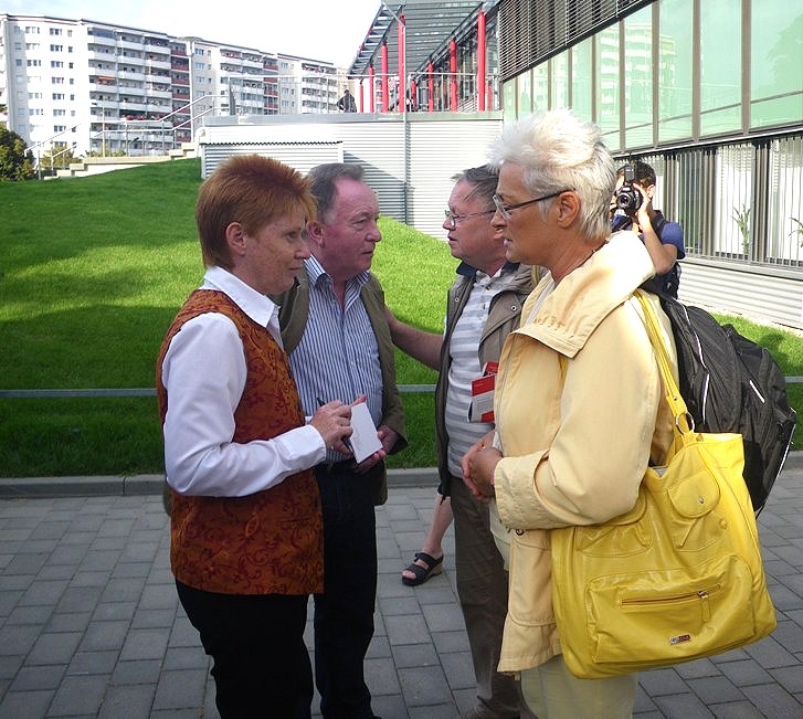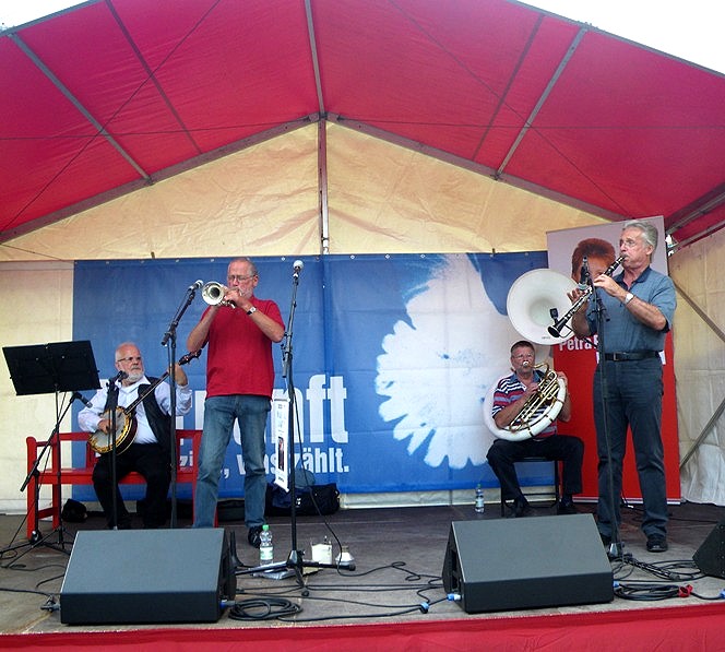 In persönlichen Gesprächen und auf der Bühne mit Peter Sodann warb Petra Pau für die Bundestagswahl am 27. 09. 2009: Erst-Stimme Pau, Zweit-Stimme DIE LINKE. Jazz-Musik sorgte für zusätzliche Stimmung.