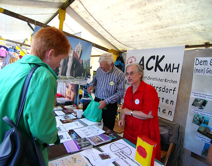 Marzahn-Hellersdorf feiert sich zwei Tage lang auf der neuen Festwiese. Petra Pau war bei der Eröffnung dabei. Später plauderte sie mit Kleingärtnern und Johannitern, mit Likör-Frauen und Gandhi-Jüngern. Das Abendkonzert mit den Prinzen genoss sie von ihrem Balkon aus, 250 m Luftlinie, sanierte Platte, 5. Etage. |