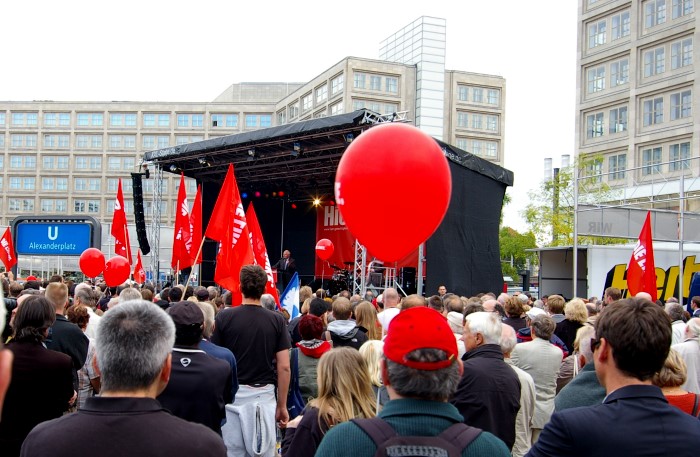 Gute Stimmung und Optimismus herrschte unter den rund 2.000 Berlinerinnen und Berliner bei der zentralen Wahlkampf-Kundgebung auf dem Alex. Für den musikalischen Rahmen sorgte die niederländische Band Bots.