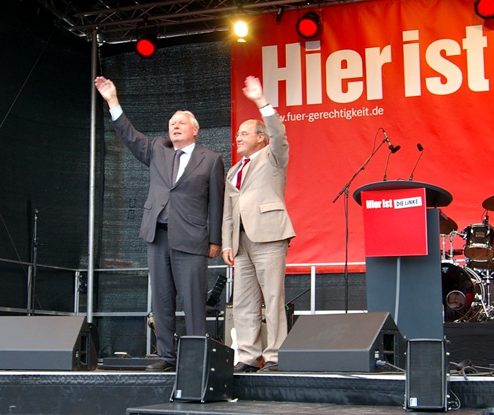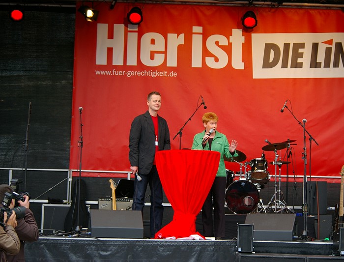 Oskar Lafontaine forderte den Abzug der Bundeswehr aus Afghanistan. Gregor Gysi geißelte die zunehmende Armut. Gesine Lötzsch plädierte für gerechte Steuern. Petra Pau prophezeite, ein guter Papst würde LINKE wählen.
