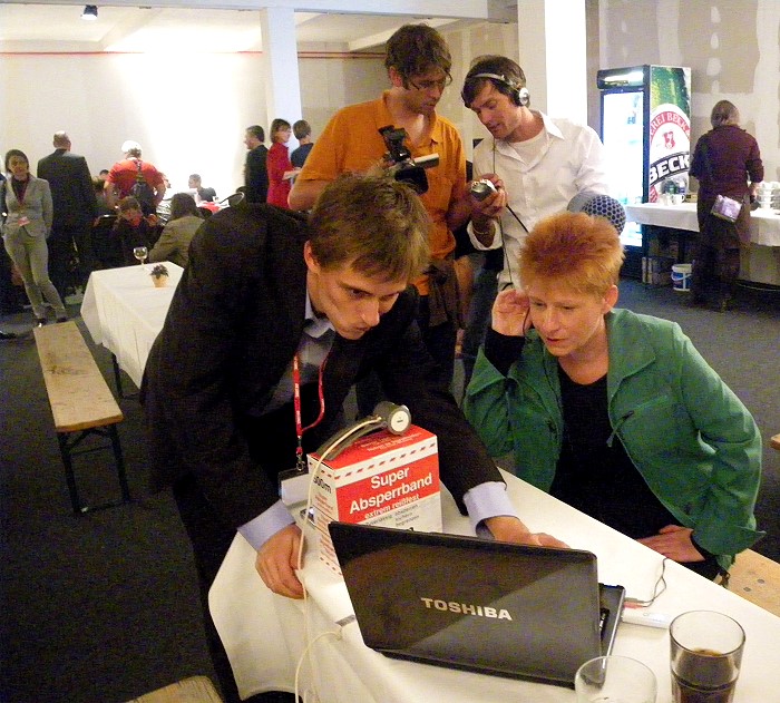 18 Uhr stand fest: DIE LINKE hat ihr Wahlziel zehn Prozent plus X überaus klar erreicht. Verglichen mit der Bundestagswahl 2005 hat sie relativ um 40 Prozent zugelegt. Entsprechend leicht gingen auch Petra Pau die Interviews über die Lippen. Via Internet gab es auch einen ersten Kontakt in den Wahlkreis. |