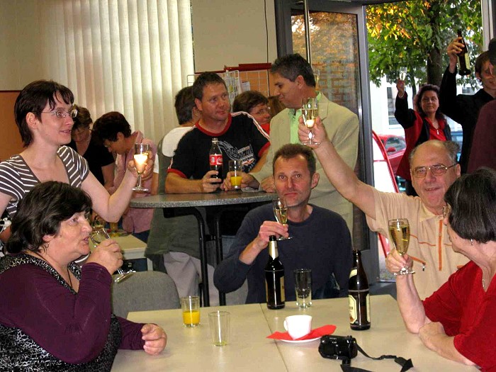 Das Direktmandat in Marzahn-Hellersdorf wurde souverän verteidigt. Petra Pau bedankte sich herzlich bei ihren vielen und engagierten Wahl-Kämpferinnen und -kämpfern. Ausgelost wurden die Sieger des Petra-Pau-Quiz. Obendrein gab es Spaß bei einem Erinnerungs-Bild an Konkurrent Rudi und seine Rammler. |