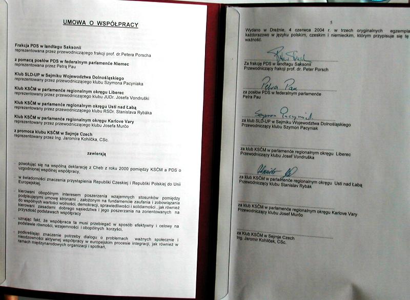 Auf einer Konferenz berieten Europa-, Landes- und Regional-Parlamentarier linker Parteien aus Deutschland, Polen und Tschechien über gemeinsame Projekte in der erweiterten EU. Petra Pau war für die PDS im Bundestag dabei. In einer Kooperationsvereinbarung wurden Vorhaben für eine soziale, kulturelle, friedliche und demokratische Entwicklung vereinbart.