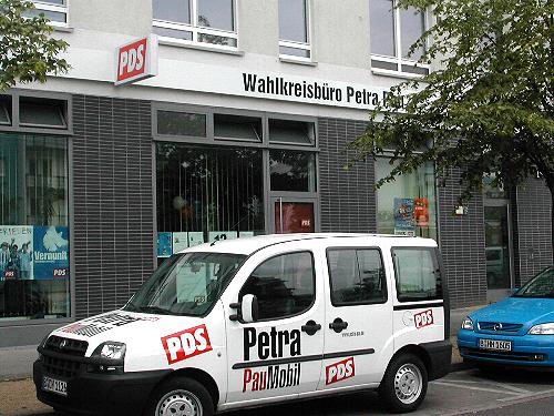 Ab heute tourt der rote Doppeldecker durch die Berliner Bezirke. Erste Station war der Alice-Salomon-Platz in Hellersdorf. Nachmittags steuerte er den Anton-Saefkow-Platz in Lichtenberg an. Mit dabei: PDS-Spitzenkandidatin Sylvia Yvonne Kaufmann sowie Bundes-, Landes- und Bezirks-Politiker, auch Petra Pau. Das Finale ist am 10. Juni im Berliner Prater.