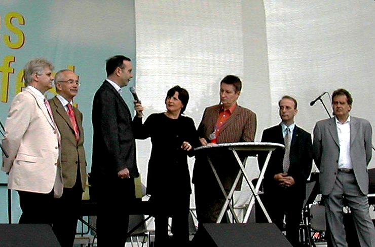 Mit einem großen Sommerfest wurde im Erholungspark Marzahn das 25-jährige Bestehen des zweit-jüngsten Berliner Stadtteils gefeiert. Dabei waren auch wieder alle, denen Bürgermeister Klett in einem Interview unterstellt hat, sie ließen den Bezirk im Stich, etwa Stefan Liebich (PDS-Landesvorsitzender) und Petra Pau: Parteifreunde sind zuweilen die besten...!