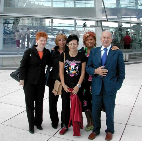 10./11. 07. 2004, Berlin: Am Wochenende tagte der Vorstand der Europäischen Linkspartei (EL) in Berlin. Die PDS im Bundestag nahm als Gast und Gastgeber teil. Petra Pau führte Fausto Bertinotti und die Vorstands-Mitglieder per Schiff durchs Regierungs- bzw. Parlamentsviertel und per pedes durch den Reichstag: Es gab internationales Kopfschütteln, als wir unsere abgelegenen Plätze zeigten.