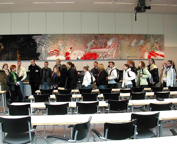 Schülerinnen und Schüler der Haeckel- Oberschule besuchten heute den Bundestag und Petra Pau. Wie verläuft eine Parlamentswoche? Was brachte die Gesundheitsreform? Oder wie viel Geld bekommen Abgeordnete? Das waren nur einige der Fragen an Petra Pau. Danach gab es noch eine Kurzbesichtigung von historischen Spuren in den Bundestagsgebäuden.