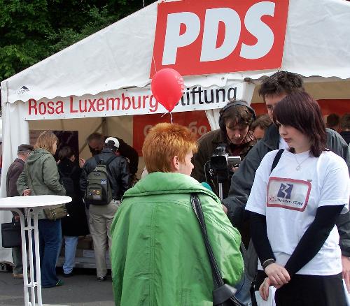 Bei über 30 °C im Schatten fand das traditionelle Marzahner Frühlingsfest am Kulturforum statt. Die PDS war wieder mit einem Informationsstand dabei. Petra Pau sprach mit Bürgerinnen und Bürgern ihres Wahlkreises. Für Gesprächsstoff sorgten immer wieder die nahenden Bundestagswahlen und Hartz IV-Frust. Petra Pau: Der Wahlkampf ist eröffnet.