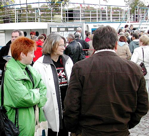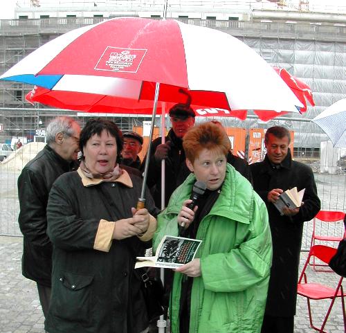 Der 1. Mai stand dieses Jahr vor allem im Zeichen der aktuellen Kapitalismus-Kritik und der anhaltenden Ablehnung von Hartz IV. Petra Pau widersprach auf der DGB-Kundgebung in Potsdam Vertreterinnen der SPD und der Grünen, die Hartz IV verteidigten. Danach war sie auf 1.-Mai-Festen der PDS in Köpenick und im Berliner Bötzow-Viertel. (Impressionen)