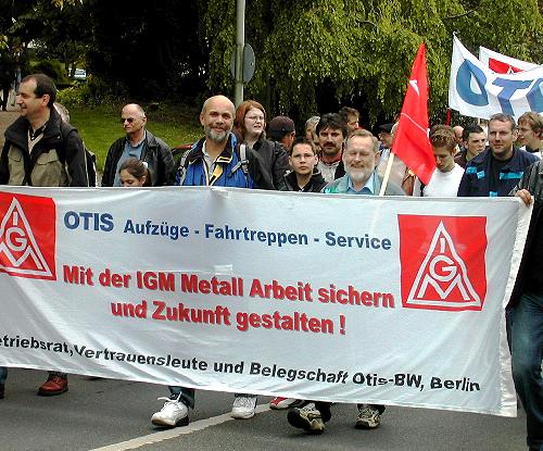 Die Belegschaft des finnischen Rolltreppenherstellers KONE kämpft weiter um den Erhalt ihres Produktions-Standortes und damit um hunderte Arbeitsplätze. Petra Pau demonstrierte mit der Belegschaft, Gewerkschaftern, Politikern, Betriebsräten aus europäischen Niederlassungen und vom Berliner Aufzughersteller OTIS gegen den drohenden Sozialabbau.