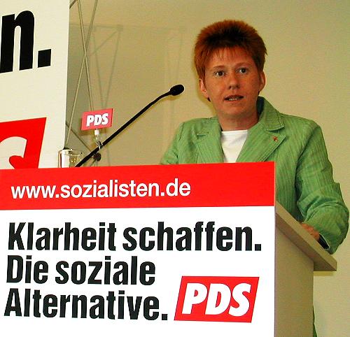 Beide PDS-MdBs, also Gesine Lötzsch und Petra Pau, sind im Landtagstagswahlkampf unterwegs. Petra Pau war heute in Herne. Sie informierte sich über Alltagsprobleme von Menschen mit Behinderungen. Und sie diskutierte abends mit Gewerkschaftern, Lehrern, Kirchenleuten und anderen Interessierten über soziale Alternativen zur rot-grünen Agenda 2010. (Impressionen)