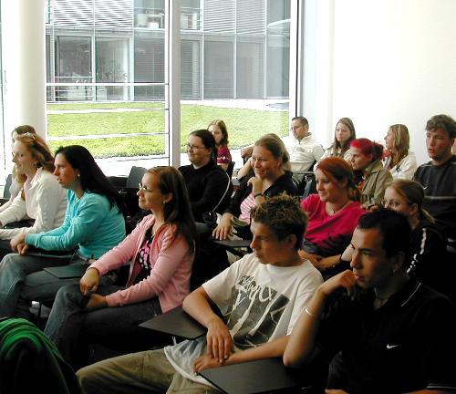 Neben der Plenar-Arbeit gab es viel Besuch. Vertreter des AEROCLUBs erläuterten ihre Kritik am Luftsicherheitsgesetz. Andere Gäste der PDS folgten der EU-Debatte. Eine Gruppe aus Marzahn-Hellersdorf interessierte sich außerdem für die Architektur der Bundestagsgebäude. Petra Pau musste sie heute leider auf den virtuellen Rundgang verweisen.