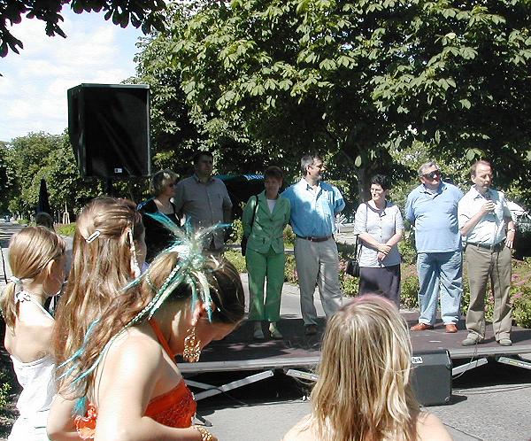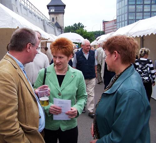 Das Zweite Deutsche Fernsehen hatte zum traditionellen Sommertreff geladen, wieder auf die Berliner Museums-Insel. Die Auflösung des Bundestages und eine neue Linkspartei lockten zahlreiche Journalisten zum Gespräch mit Petra Pau. Aber auch miteinander bot das ZDF-Fest Raum für einen Plausch unter PDSler, etwa mit Senatorin Heidi-Knake Werner bei einem Glas Sekt.