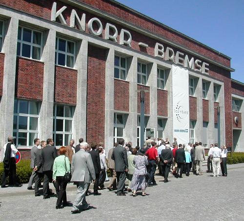 1995 gründete Georg Knorr in Berlin eine Firma, die Bremsen für Schienenfahrzeuge produziert. Die Knorr-Bremse ist auch heute noch ein weltweit führender Konzern. Am Standort Marzahn arbeiten rund 500 Kollegen. Damit ist Knorr-Bremse das größte Unternehmen im Wahlkreis. Heute wurde 100jähriges Jubiläum gefeiert. Petra Pau kam gratulieren.