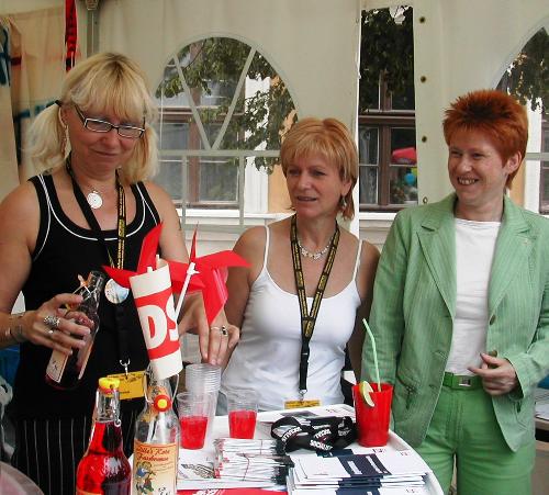 Petra Pau war am PDS-Stand und im Fest-Gewimmel dabei und wurde häufig nach der neuen Links-Partei befragt. Bei der PDS gab es Bonbon-Brause und Zucker-Watte, beides natürlich in Rot.