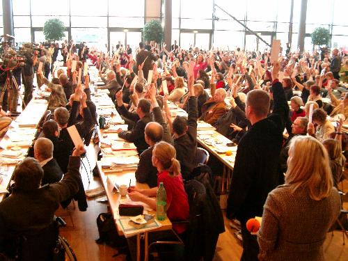 03. 12. 2005, Berlin, Landesparteitag der Linkspartei.PDS: Zum neuen Landesvorsitzenden wurde Klaus Lederer gewählt. Außerdem ging es um die Vorbereitung auf die Berliner Wahlen 2006 und um die Bildung einer neuen, bundesweiten Linken. Dazu sprach auch Oskar Lafontaine. Petra Pau, u. a. Berlin-Beauftragte der Linksfraktion im Bundestag, warb für mehr Linkes aus dem Bundesrat. (⇒ zur Rede)