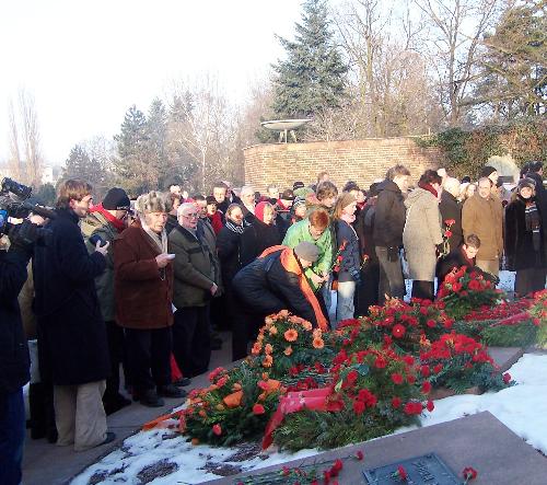 85.000 Teilnehmerinnen und Teilnehmer aus nah und fern ehrten heute in der Gedenkstätte der Sozialisten in Berlin-Friedrichsfelde Rosa Luxemburg und Karl Liebknecht. Beide waren 1919 von Freicorps ermordet worden. Erneut nahm der Vorstand der Europäischen Linken mit Fausto Bertinotti und zum ersten Mal die WASG mit Oskar Lafontaine an der Ehrung teil.