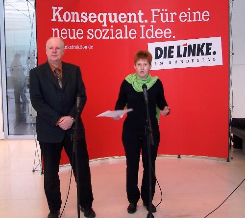 Petra Pau auf der ad hoc Pressekonferenz; Foto: Axel Hildebrandt05. 04. 2006, Berlin, Bundestag: