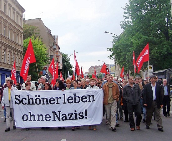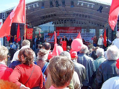 Bundesweit demonstrierten heute 500.000 Bürgerinnen und Bürger für ihre sozialen Rechte. Petra Pau nahm an der Berliner DGB-Kundgebung mit Ver.di-Chef Frank Bsirske teil. Danach schrieb sie sich in der Jüdischen Gemeinde in das Kondolenzbuch zum Tod Paul Spiegels ein. Schließlich war sie auf Mai-Festen der Linspartei in Köpenick, Treptow und Prenzlauer Berg. (⇒ Impressionen)
