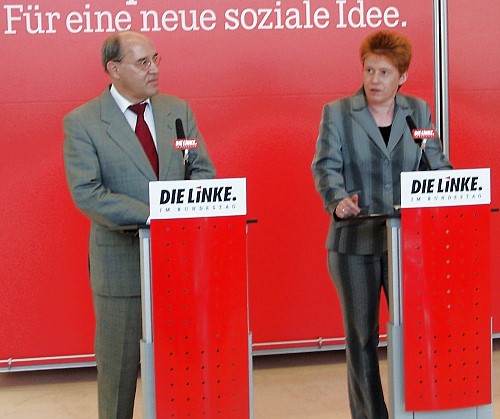 Eine Woche lang tagt der DGB in Berlin. Heute fand der obligatorische Parteienabend statt. DIE LINKE war mit der Fraktionsspitze und mit Petra Pau präsent. Ein zentrales Thema war der gesetzliche Mindestlohn. Bundeskanzlerin Merkel hat sich dagegen ausgesprochen. Der DGB ist inzwischen dafür. Und die Linkspartei.PDS führt dafür mit der WASG eine Mindestlohn-Kampagne.