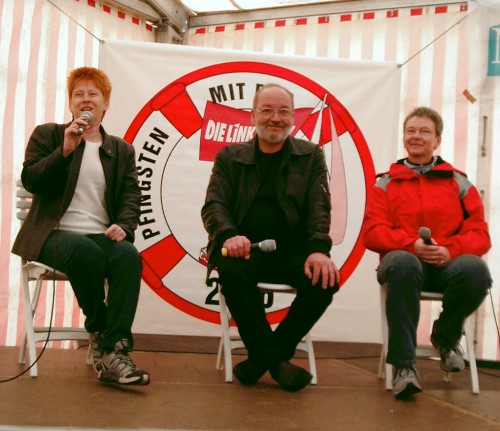 Rund 1.000 Teilnehmerinnen und Teilnehmern aus allen Bundesländern verbringen wieder traditionell ihr Pfingsten mit der Linkspartei.PDS am Werbellinsee. Neben Sport, Kultur und Tanz gibt es im Veranstaltungszelt immer wieder Politik-Gespräche, heute auch mit Kersten Naumann und Petra Pau, beide von der Bundestagsfraktion DIE LINKE.