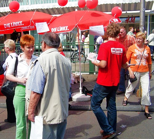 Am 17. September 2006 wird im Land Berlin und in seinen Bezirken gewählt. Die Linkspartei.PDS eröffnete heute mit einer Kundgebung auf dem Garbátyplatz in Pankow ihren Wahlkampf.
