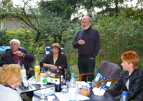 In Elkes Biotop fand wieder ein Mal das traditionelle Gute-Laune-Grillen mit Axels ungarischem Kesselgulasch statt. Ein gern genommenes, süffisantes Aufbauwerk, besonders in Wahlkampfzeiten. Dem allgemeinen Trend entsprechend wurde die LINKE hoch und runter betratscht. Entgegen dem aktuellen Trend wurde jedoch kein neuer Flügel der LINKEN kreiert.