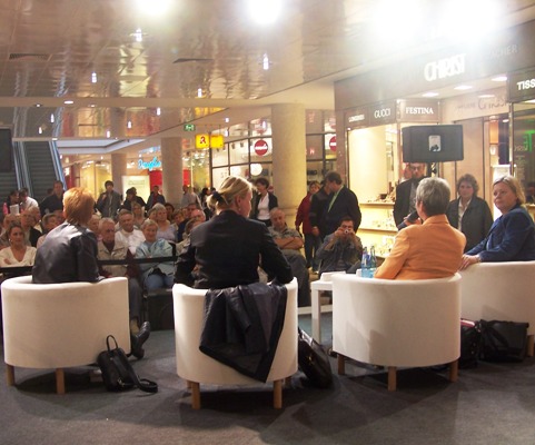 Ob per Info-Truck oder Wander-Ausstellung, der Bundestag tourt durchs Land und versucht so, sich und die Parlamentsarbeit an die Bürgerinnen und Bürger zu bringen, heute mit einer Gesprächsrunde im Linden-Center. Dort beantworteten Gesine Lötzsch, Kersten Naumann und Petra Pau (alle DIE LINKE) die Fragen der interessierten Kundschaft im Konsum-Tempel.