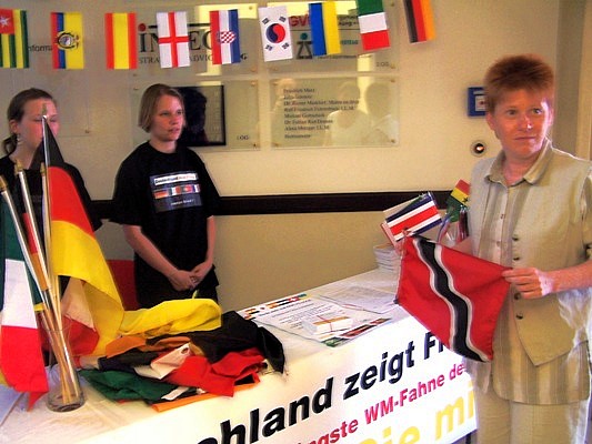 1.000 Euro ist das Mindestgebot für die längste Fan-Fahne der Welt. Sie wurde nach der Fußball-WM aus gespendeten Flaggen zusammen genäht. Petra Pau hatte eine von Trinidad & Tobago beigesteuert. Die Versteigerung beginnt am 1. November im Internet. Der Erlös wiederum geht an den Verein Miteinander - Netzwerk für Demokratie und Weltoffenheit in Sachsen-Anhalt e. V..