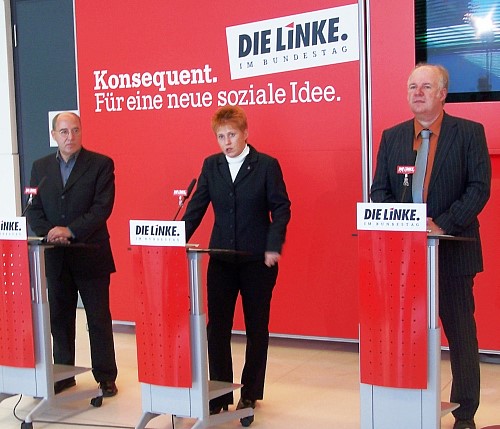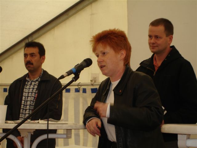 Bosch-Siemens-Haushalt (BSH) droht die Schließung. 1.200 Arbeitsplätze sind bedroht. Die Belegschaft wehrt sich seit Wochen dagegen. Klaus Lederer überbrachte heute 400 Euro für die Streikasse, die auf dem Parteitag der Berliner Linkspartei.PDS gesammelt wurden. Und Petra Pau versprach, den geplanten BSH-Marsch nach München zu begleiten.