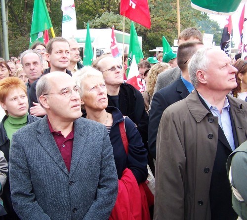 Das geht besser - aber nicht alleine, war der bundesweite Aktionstag des DGB überschrieben. Allein in der Hauptstadt beteiligten sich rund 80.000 aus mehreren Bundesländern, unter ihnen auch die Partei- und Fraktionsspitze der LINKE. Der Berliner Hauptredner, Ver.di-Vorsitzender Frank Bsirske, forderte von der Bundespolitik eine Wende zugunsten sozialer Gerechtigkeit.