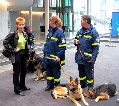 Schon traditionell stellte sich heute das Technische Hilfswerk (THW) im Bundestag vor. Im Mittelpunkt ihrer Präsentation durch ehrenamtliche Helfer des THW im Paul-Löbe-Haus stand heute der Einsatz von Rettungshunden, etwa bei der Suche nach Verschütteten. Petra Pau war dabei. Die Verbindung zum THW gehört zu ihren Aufgaben als Abgeordnete.
