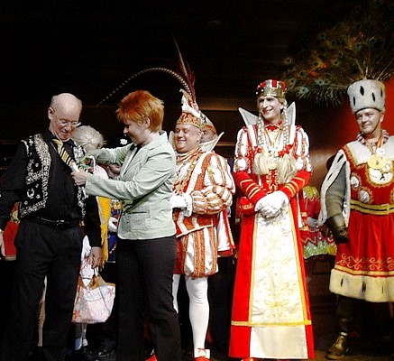 Mit dem Parlaments- und Regierungsumzug von Bonn nach Berlin kamen viele Rheinländerinnen an die Spree. Die bestehen auf ihrer Weiberfastnacht. Und so wurde das Jacob-Kaiser-Haus heute wieder zum Karneval hergerichtet. Petra Pau eröffnete als Vize-Präsidentin das bunte Jecken-Treiben und sie schnitt dem Direktor des Hauses standesgemäß seine Krawatte ab.