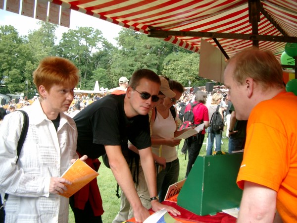 Zum 10. Mal fand heute im Volkspark Friedrichshain das lesbischwule Parkfest statt. Tausende feierten rund um die Freilichtbühne. Die LINKE-Berlin und die AG Queer war mit einem Stand vertreten. Auch Petra Pau nahm erneut teil. Vordem war sie auf der offiziellen Gedenkfeier im Berliner Dom für die drei in Afghanistan ermordeten Polizisten.