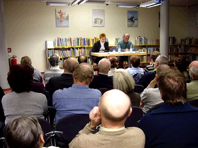 Podiumsgast der 48. Hermsdorfer Gespräche in der Stadtbibliothek war Petra Pau. DIE LINKE - wie weiter? war der Diskussionsabend mit rund 80 Interessierten überschrieben. In ihrem Eingangsstatement ging Petra Pau auf das strategische Verhältnis von sozialen, Bürger- und individuellen Freiheitsrechten ein. Dann ging es quer Beet durch die Politik. (⇒ Redeausschnitt hören)