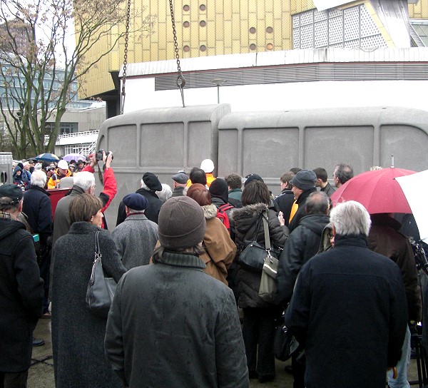 18. 01. 2008, Berlin: Auf dem Vorplatz der Philharmonie wurde heute das Denkmal die grauen Busse aufgestellt. Petra Pau war dabei. Es erinnert an die systematische Ermordung von Menschen mit körperlichen oder geistigen Behinderungen in der NS-Zeit. Das so genannte Euthanasie-Programm der Nazis wurde in einer Villa in der Tiergartenstraße 4 geplant, daher der Name Aktion T4.