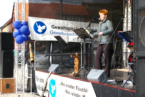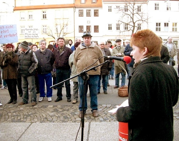Petra Pau redete heute auf dem Markplatz zu den Teilnehmern der traditionellen Montags-Demo. Außerdem unterstützte sie Jörg Freiwald, Oberbürgermeister-Kandidat der Linkspartei, bei dessen Wahlkampf. Der Tag endete mit einem gemeinsamen Bürgerforum, auf dem Petra Pau unter anderem über die bundesweite Perspektive der Linkspartei sprach.