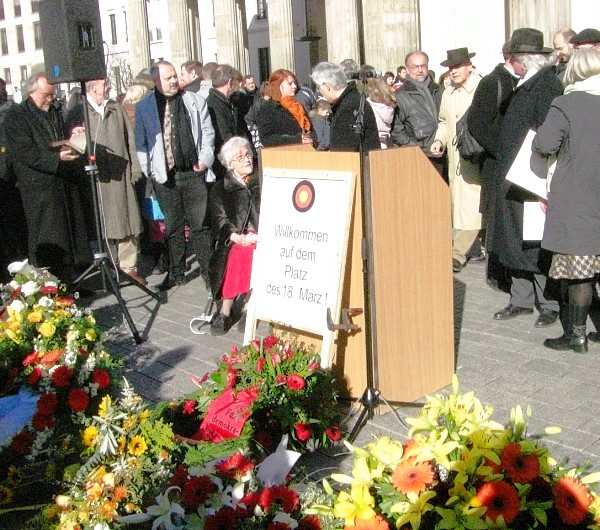 Mit mehreren Veranstaltungen wurde heute der revolutionären Ereignisse im März 1848 gedacht. Petra Pau nahm an der Kundgebung am Brandenburger Tor teil. Zugleich sammelt die Aktion 18. März Unterschriften, um das Datum alljährlich als Feiertag zu begehen. Das Abgeordnetenhaus von Berlin hat dafür bereits einen entsprechenden Beschluss gefasst.