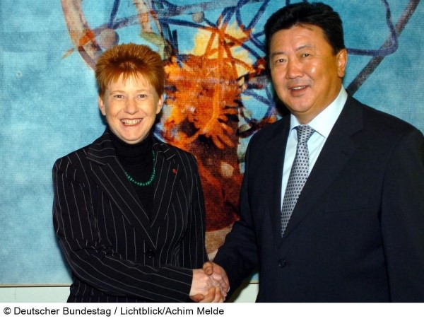 Der Vizepräsident des Großen Staatskhurals der Mongolei, Herr Nyamaa Enkhbold, ist auf Staatsbesuch in der Bundesrepublik Deutschland. Petra Pau empfing ihn und seine Delegation heute als Vizepräsidentin des Deutschen Bundestages. In dem gemeinsamen Gespräch ging es vor allem um einen besseren Erfahrungsaustausch zwischen den Parlamentariern beider Länder.
