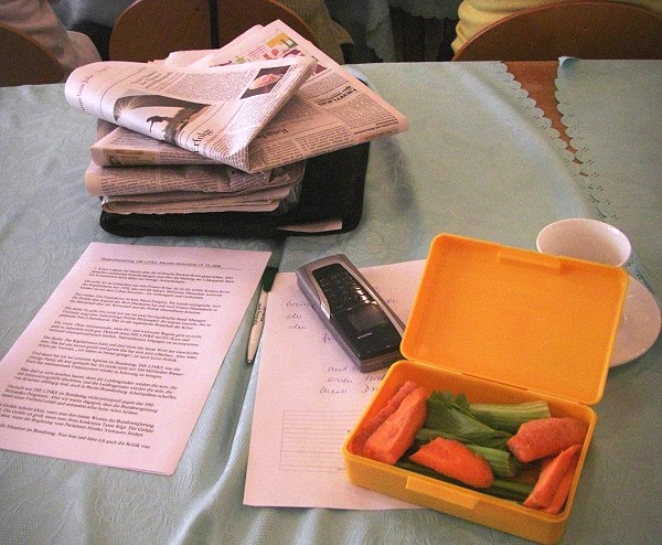 Petra Pau begrüßte im Bundestag heute eine Besuchergruppe der Volkssolidarität aus Bernburg, dem Wahlkreis von Jan Korte. Jan war entschuldigt, weil er morgen heiraten will. Vordem tagte unter Petras Leitung das Vorbereitungs-Team für eine bundesweite Konferenz gegen Rechtsextremismus, Rassismus und Antisemitismus am 24. und 25. Januar 2009 in Berlin.