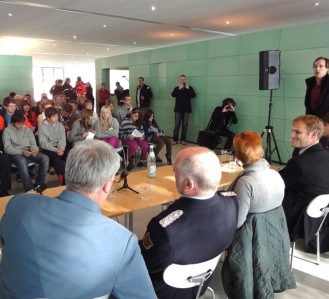 Petra Pau traf sich heute mit Journalistinnen und Journalisten, die an einem deutsch-englischen Austauschprogramm teilnehmen. Im angeregten Gespräch ging es um ihre politische Biografie, um den Werdegang und Schwerpunkte der Partei DIE LINKE, um die Rollen von Gregor Gysi und Oskar Lafontaine, um das Verhältnis zur SPD und um den Krieg in Afghanistan.
