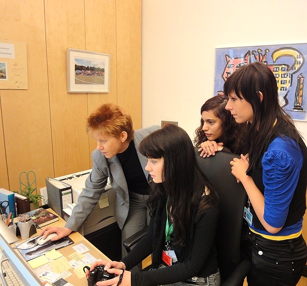 Im Büro von Petra Pau gibt es derzeit Zuwachs. Rawan Suleiman (Israel) nimmt fünf Monate lang ein internationales Stipendiat war. Deborah Diekmann (Münsterland, Dülmen) absolviert ein vierwöchiges Schülerinnen-Praktikum. Und Jenny Schneider (Berlin, Marzahn-Hellersdorf) gehört zu den diesjährigen Teilnehmerinnen am Jugend-Medien-Workshop.