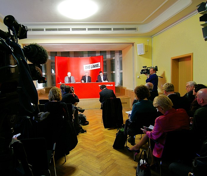 Die beiden Vorsitzenden der Partei DIE LINKE, Lothar Bisky und Oskar Lafontaine, stellten heute im Karl-Liebknecht-Haus auf einer Pressekonferenz den Entwurf für ein neues Grundsatzprogramm vor. Damit ist die lang erwartete Programm-Debatte eröffnet. Vorgesehen ist, das Programm Ende 2011 durch einen Parteitag, möglicherweise auch per Urabstimmung, in Kraft zu setzen.