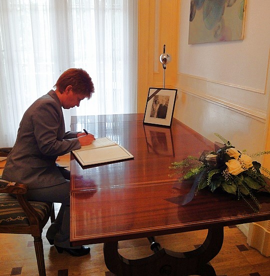 Sonnabend verunglückte eine prominent besetzte Passagiermaschine beim Landeanflug im russischen Smolensk. Alle 96 Insassen kamen dabei ums Leben, unter ihnen Polens Präsident Lech Kaczynski. Die Ursache für die Katastrophe ist weiterhin ungeklärt. Petra Pau besuchte heute den Botschafter Polens in Deutschland, Herrn Marek Prawda, und schrieb sich ins Kondolenzbuch ein.