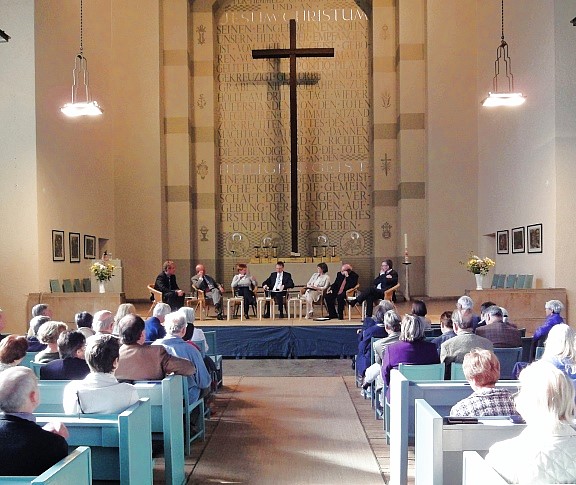 Orientierung in der Krise - Relevanz jüdischer und christlicher Gerechtigkeitsperspektiven war heute eine Podiumsdiskussion in der Jesus-Christus-Kirche Dahlem überschrieben. Geistliche Einführungen gaben Prof. Andreas Nachama und Prof. Gerhard Wegner. Petra Pau mahnte die Kirchen, vernehmbarer gegen Unrecht und soziale Kälte zu agieren.