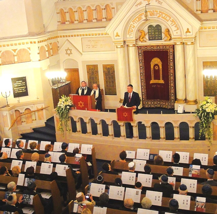 Erstmals seit 1935 wurde in Deutschland heute wieder eine Rabbinerin ordiniert. Studiert hat Alina Treiger, ebenso wie die nunmehrigen Rabbiner Boris Ronis und Konstantin Pal, am Abraham Geiger Kolleg in Potsdam. Zum Festgottesdienst in der Synagoge Pestalozzistraße kamen Gäste aus aller Welt. Auch Bundespräsident Christian Wulff und Petra Pau nahmen teil.