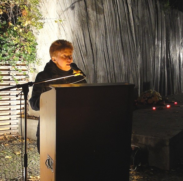09. 11. 2010, Berlin: Tausende Jüdinnen und Juden wurden zwischen 1941 und 1945 vom Gleis 17 am Bahnhof-Grunewald in faschistische Todeslager deportiert. Daran erinnerten heute erneut Berliner Schülerinnen und Schüler sowie Anwärterinnen und Anwärter für den Polizeidienst gemeinsam mit der Jüdischen Gemeinde. Petra Pau sprach zu ihnen als Vizepräsidentin des Bundestags. (⇒ zur Rede)