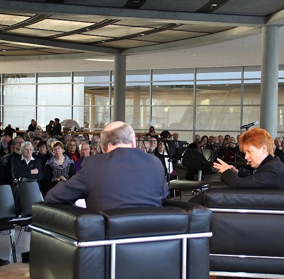 Rund 400 Berlinerinnen und Berliner kamen heute ins Reichstags-Gebäude zu Klassik & Politik, eine Veranstaltungs-Reihe, die Deutschland-Radio als Pausen-Gespräch übertrug. Ein Sextett des Deutschen Symphonie-Orchesters spielte Penderecki und Dohnanyi. Außerdem sprach Peter Lange mit Petra Pau über aktuelle Kulturthemen. (⇒ zum Pausen-Gespräch als mp3)